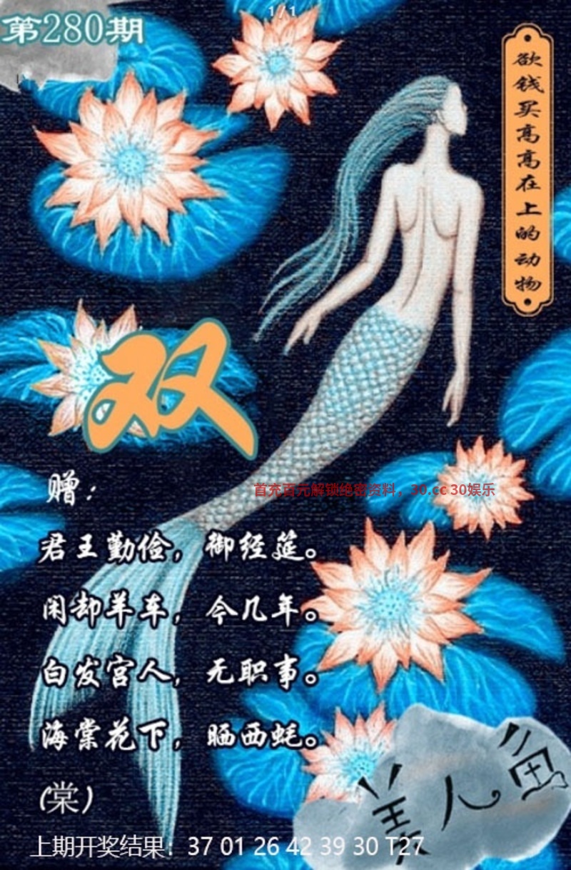 278期:美人鱼 解:飞稀翩然,拂曙凉。都门饯送,集冠裳。乡鼠此去,嗟予季。忠国古来,留异方 综合:羊马狗虎猴牛 |